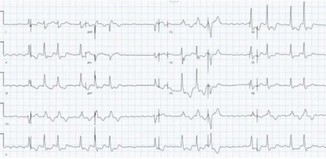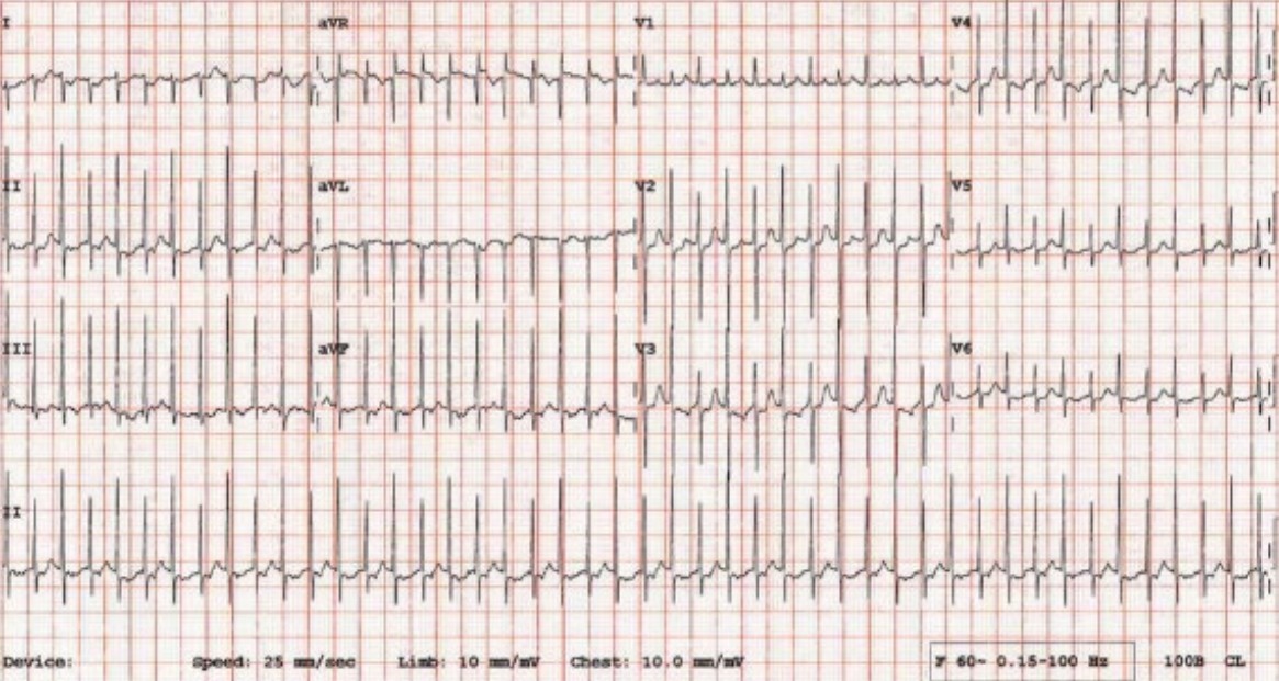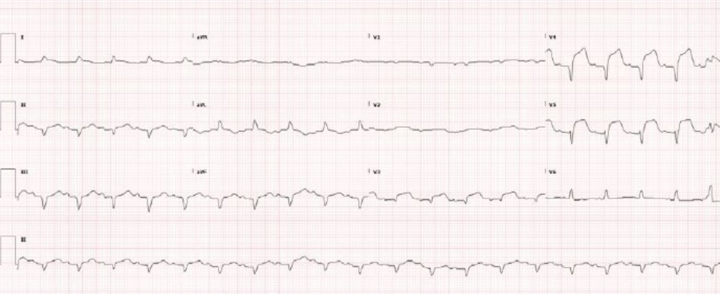 A 55-year-old male is brought in by ambulance with palpitations. He is placed into a resus bay and has intravenous β¦