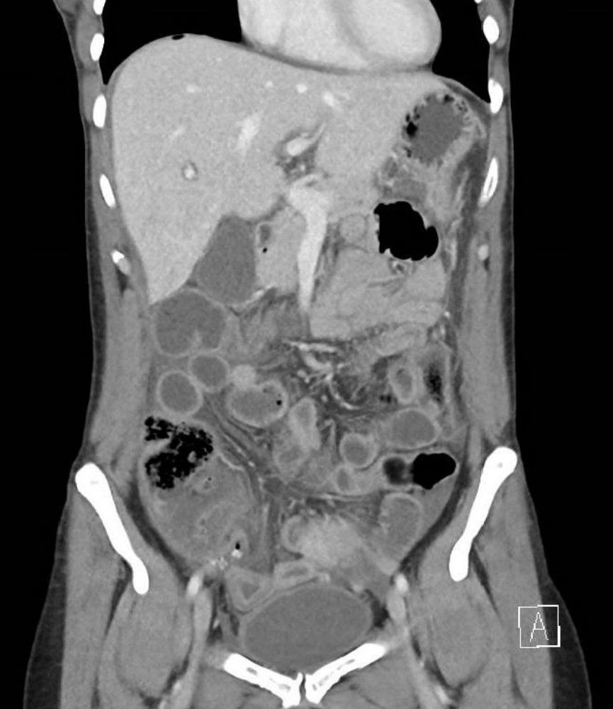 A 12-year-old boy presents with severe abdominal pain and vomiting. On arrival he is groaning and pale with the following β¦