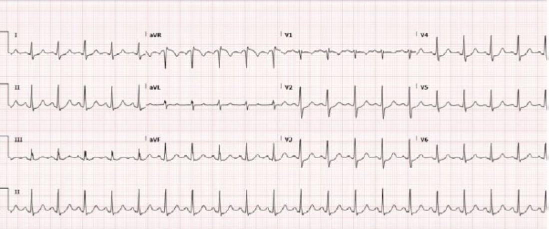 A 35-year-old woman presents to the ED with central chest pain and two syncopal episodes.