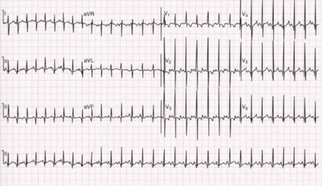 A 59-year-old woman is brought to the resus room by paramedics after becoming weak, dizzy and nauseated while getting her …
