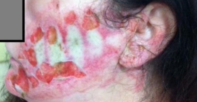 A mother brings her 7-month-old baby after she accidentally spilled hot water from the kitchen sink onto the baby's neck, β¦
